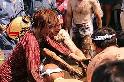 県指定無形民俗文化財である平方祇園祭(八枝神社)のどろいんきょ行事は、私にとって、1年間で一番重要なイベントのひとつ。毎年、この日に向けて身体づくりをして臨みます。