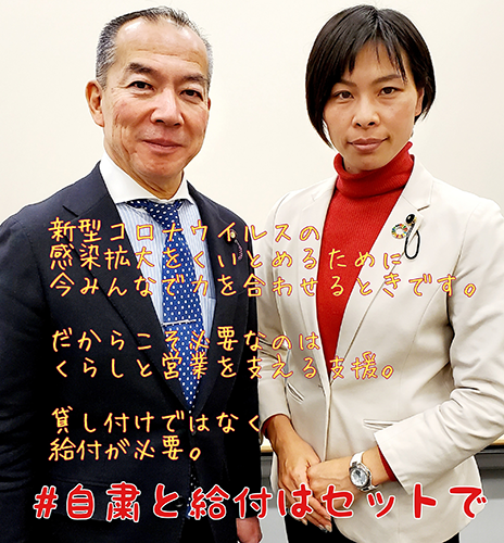 いずれにしても長期戦となるであろう新型コロナウイルスとのたたかいです。感染拡大を防ぐため、私も責任ある行動をしたいと思います。そして、国民の苦難軽減のためにがんばる、という日本共産党の立党の精神を大切に、みんなの声を、市へ県へ国へ、しっかり届ける仕事に、全力で取り組みます!