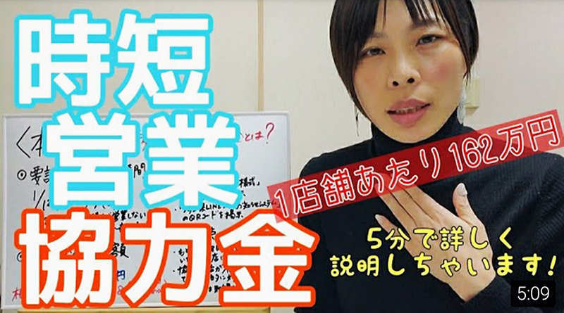 【写真:秋山もえ県議が『時短営業協力金』について説明しているYouTubeチャンネルのサムネイル】